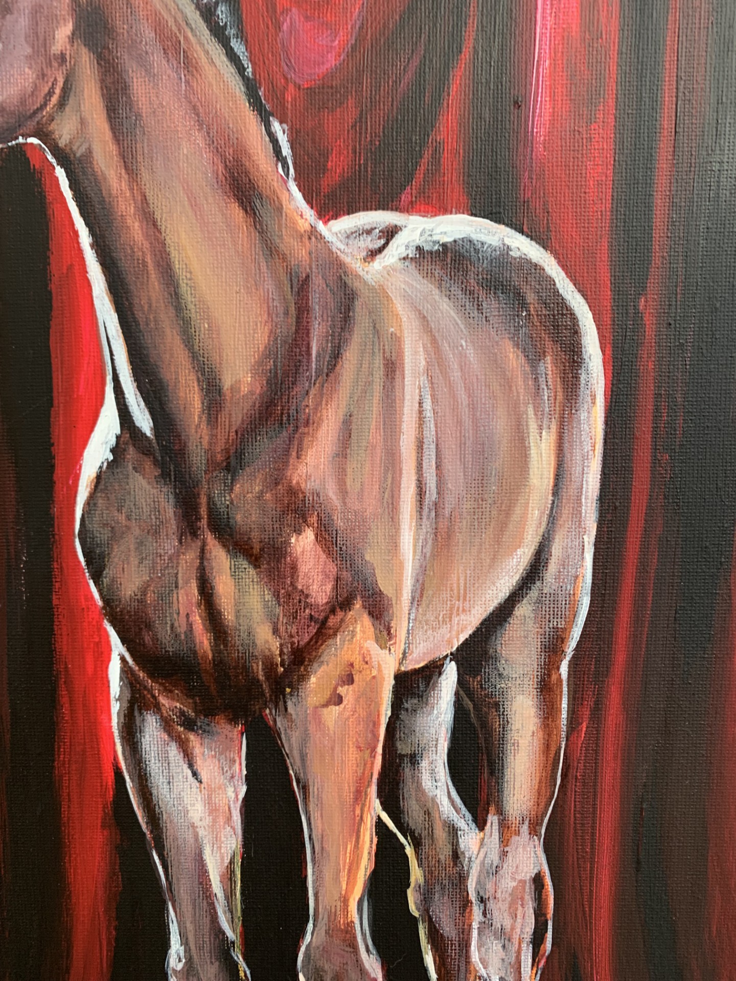 Maalaus on tehty 50x60cm kokoiselle canvaspohjalle, eli se on valmis sellaisenaan ripustettavaksi, eikä sitä tarvitse kehystää, vaikka tähän saattaisi kyllä sopia upeat, kultaiset koristeelliset kehyksetkin, väreissä on jo tietynlaista ylellisyyttä mukana!