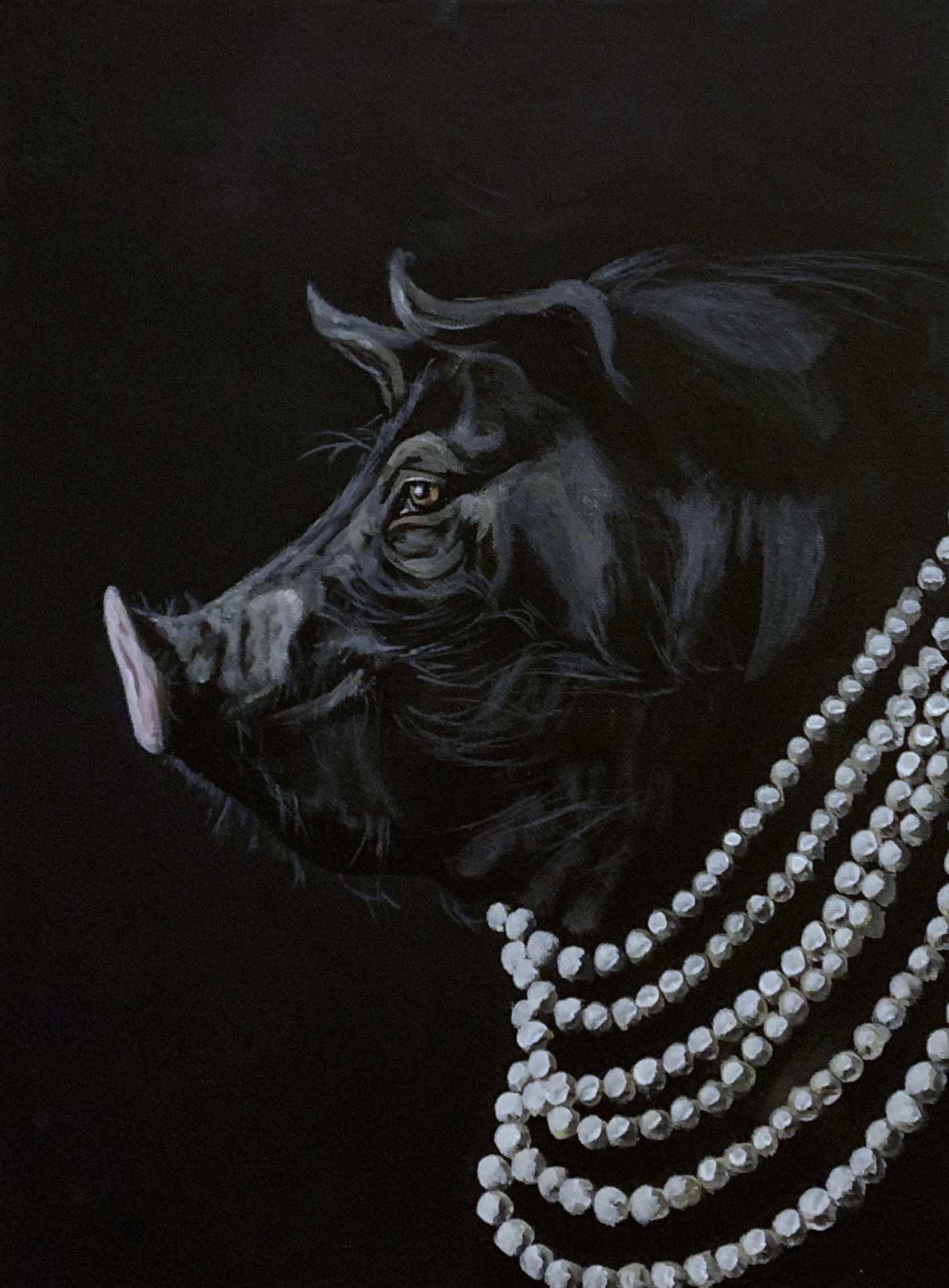 The Aristohog on tyylikäs ja humoristinen eläinmuotokuva, jossa musta possu kuvataan aristokraattisena. Teos yhdistää tumman estetiikan, ylellisyyden ja hienovaraisen itseironian.